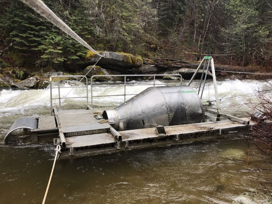 Rotary Screw Traps can be dangerous to you and your loved ones—including your pets. You can easily enter the mouth of the rotating cone, become injured by the rotating wings, and even possibly get pinned underwater. Never swim or float near a Rotary Screw Trap and make sure your pets don’t go near them either. Do not climb on a Rotary Screw Trao, as this is dangerous and could possibly damage the trap.